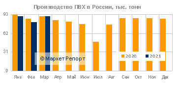 Объемы производства ПВХ в РФ снизились на 3% в 1 квартале 2021 года